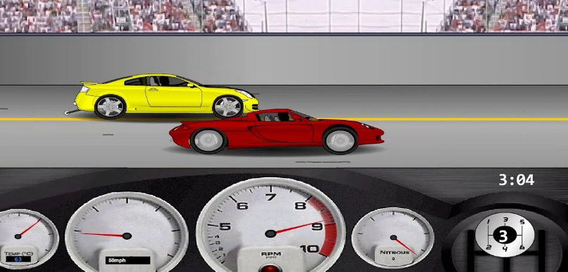 The game simulates the mechanics of drag racing, where the goal is to accelerate your car to reach the finish line before your opponent. You need to manage your shifting, acceleration, and nitrous oxide usage to achieve the best performance and win races.